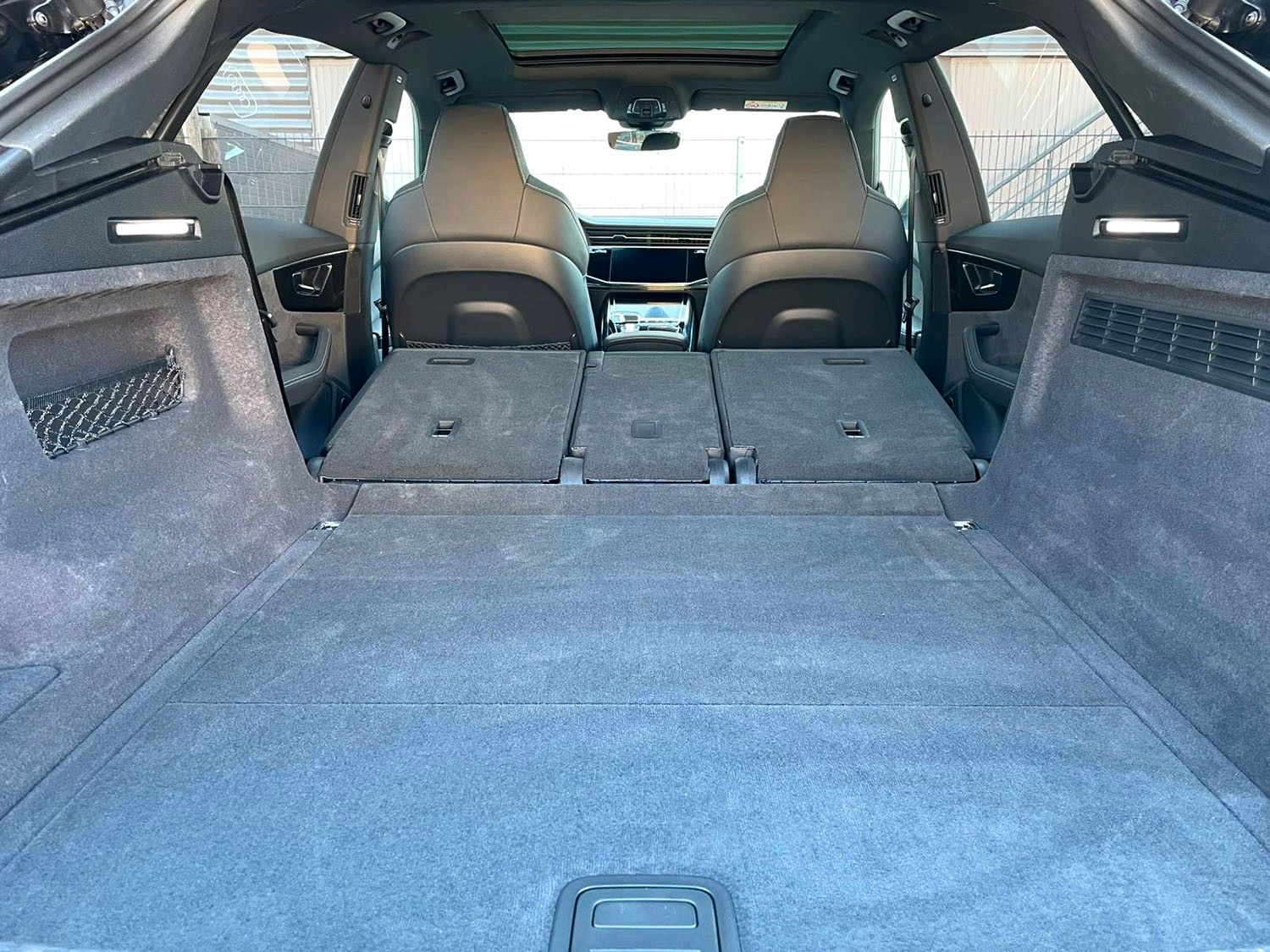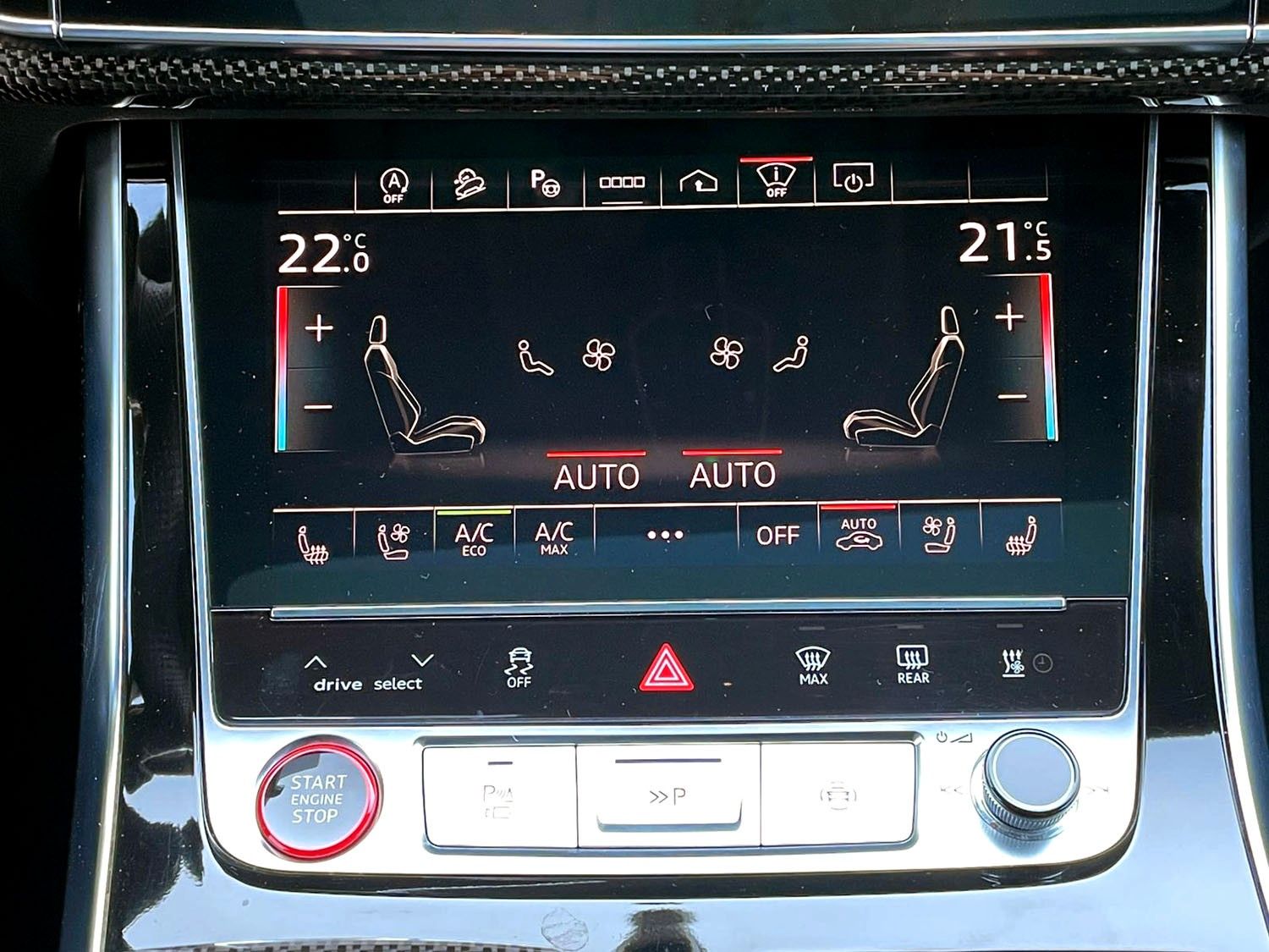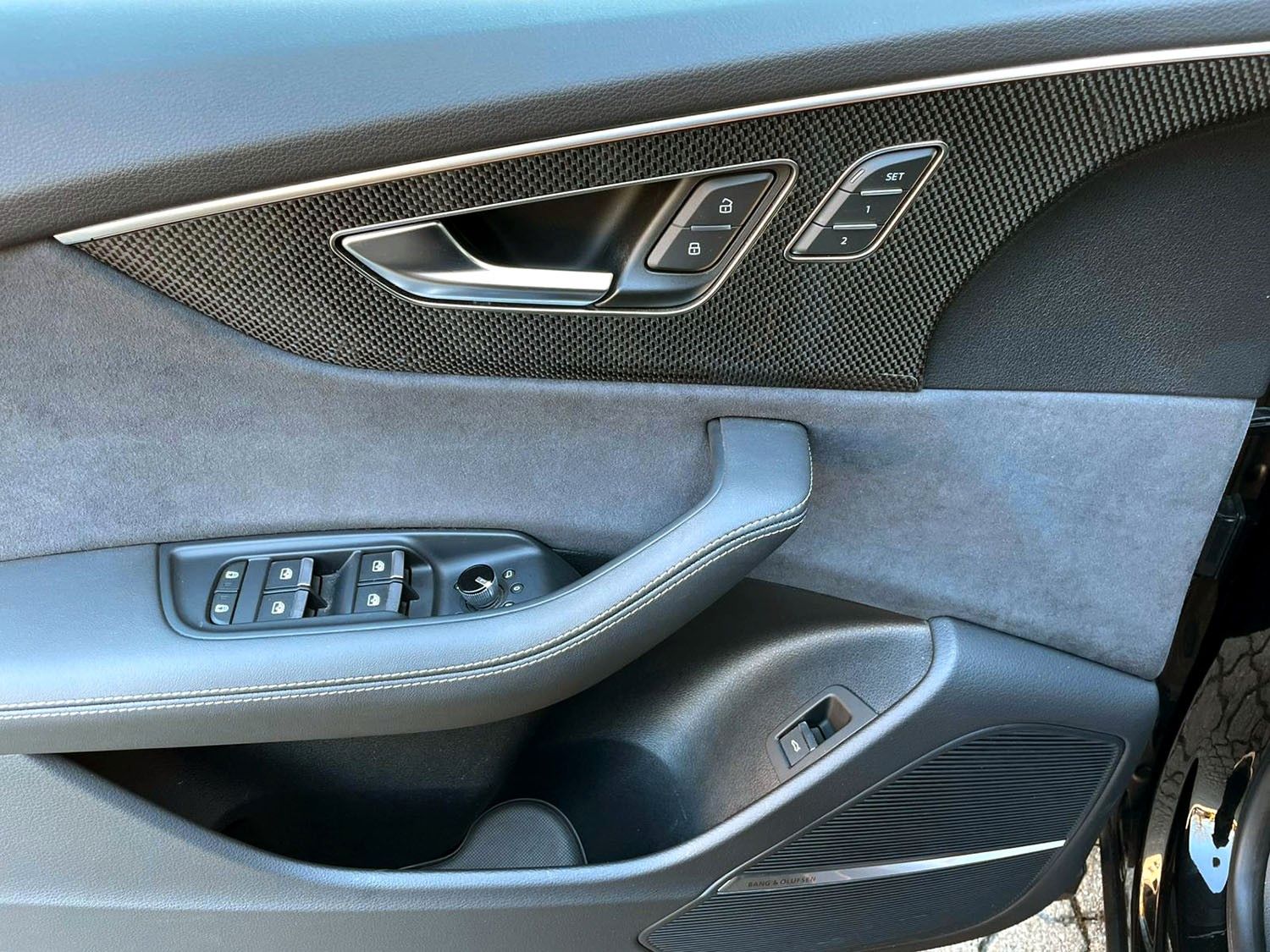 Akustikglas Türscheiben seitlich, Anhängerkupplung mit Anhängerassistent, Assistenz-Paket plus, Audi connect Schlüssel, Audi Ringe und Schriftzüge schwarz glänzend, Audi Smartphone Interface, Ausstattungs-Paket: Technology Selection, Außenspiegel elektr. verstell-, heiz- und anklappbar, mit Abblendautomatik und Memory, Bremssättel Rot lackiert, Business-Paket, Carbon-Style-Paket, Dachreling schwarz, DVD-Laufwerk, Einstiegsleuchten LED mit Projektionsfunktion, Fahrassistenz-System: Insassen-Schutzsystem (Audi pre sense Fond), Fahrwerks-Paket: Advanced, HD Matrix-LED-Scheinwerfer, Innenausstattung: Dekoreinlagen Carbon, Ionisator zur Luftreinigung (Air-Quality-System), Kontur / Ambientebeleuchtungs-Paket (plus), LM-Felgen 10x23 (10-Speichen-Trapezoid-Design, schwarz, Audi Sport), Metallic-Lackierung, Optik-Paket schwarz plus, Panoramadach vorn elektrisch, hinten fest, Rücksitzlehne geteilt/klappbar, verschiebbar (40:20:40), S Sportsitze plus vorn, Sender für Garagentoröffner (integriert), Sitzbelüftung und Massagefunktion vorn, Sitzbezug / Polsterung: Leder Valcona mit Rautensteppung, Sitze vorn elektr. verstellbar (mit Memory), Sound-System Bang & Olufsen, Standheizung, Verglasung hinten abgedunkelt (Privacyverglasung)