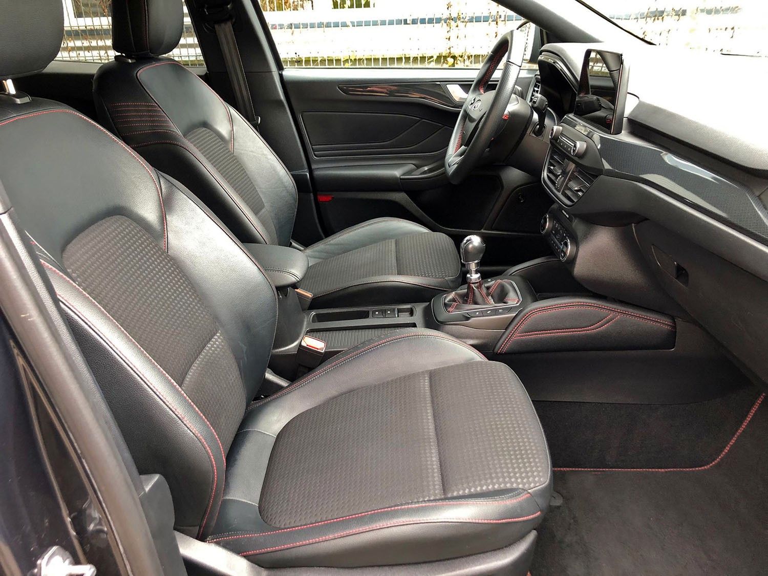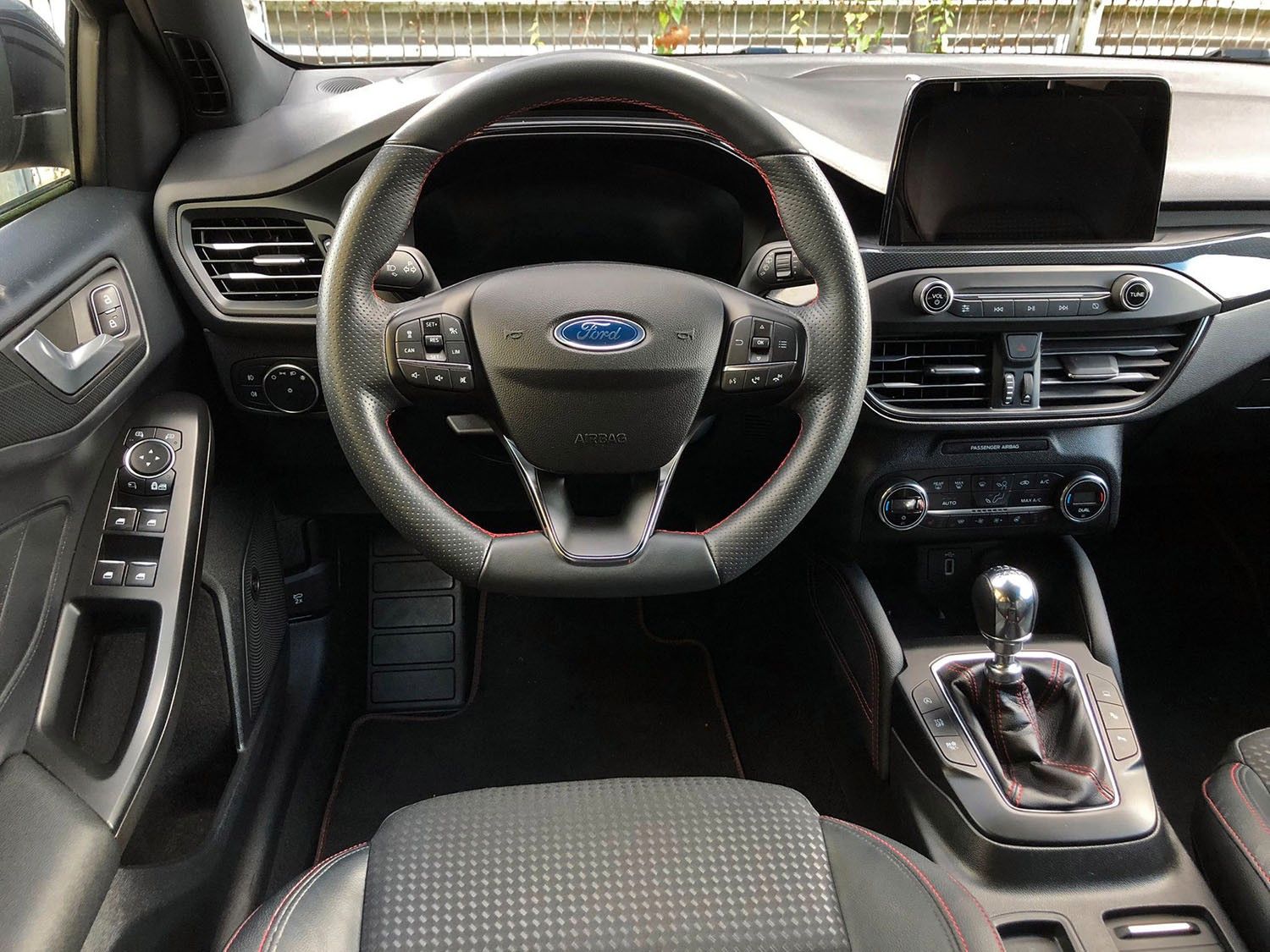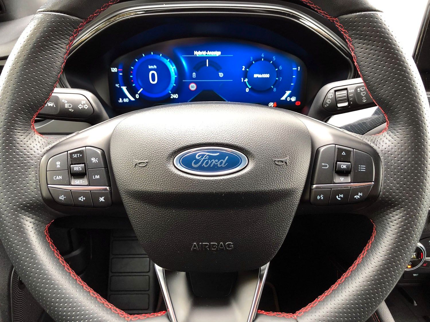 Airbag Beifahrerseite abschaltbar, Antischlupfregelung (ASR), Audio-Navigationssystem Ford mit AppLink, Außenspiegel elektr. anklappbar, Außenspiegel elektr. verstell- und heizbar, Body-Styling-Paket, Bord-/Verbrauchscomputer, Bremssättel Rot lackiert, Dachhimmel Stoff, dunkel, Dachreling schwarz, Dachspoiler (große Ausführung), Dimmer Instrumentenbeleuchtung, Doppelendrohr Auspuffanlage, Elektr. Bremskraftverteilung (EBD), Fahrassistenz-System: Berganfahr-Assistent (Hill-Holder), Fahrassistenz-System: Notbrems-Assistent, Fahrassistenz-System: Post-Collision-System, Fahrassistenz-System: Pre-Collision-System, Fahrassistenz-System: Spurhalteassistent, Family-Paket, Farbdisplay für Bordcomputer, Fensterheber elektrisch vorn + hinten mit Komfortschließung, FordPass Connect inkl. eCall, Fußmatten Velours mit Ziernähte, Gepäckraumabdeckung / Rollo, Getriebe 6-Gang - Typ: 6MX65, Innenraumfilter: Staub- und Pollenfilter, Intelligent Protection System (IPS), Intelligenter Geschwindigkeits-Begrenzer, Isofix-Aufnahmen für Kindersitz, Karosserie: 5-türig, Kofferraumdeckel / Heckklappe elektr. betätigt (Öffnung, sensorgesteuert), Kombiinstrument Digitalanzeige 12,3 Zoll, Komfort-Paket, Kopfstützen hinten mechan. verstellbar (3 Stück), Kopfstützen vorn 4-fach verstellbar, Laderaumboden verstellbar, Lenkrad (Sport/Leder, ST), Lenksäule (Lenkrad) höhen-/längsverstellbar, LM-Felgen, Mild-Hybrid 114 kW (Motor 1,0 Ltr. - 114 kW EcoBoost), Mittelkonsole Premium, My Key (2. Fahrzeugschlüssel programmierbar), Nebelscheinwerfer LED, Nebelscheinwerfer mit statischem Abbiegelicht, Parkbremse elektrisch mit Auto-Hold-Funktion, Parkpilotsystem vorn und hinten, Pedale Aluminium, Reifendruck-Kontrollsystem, Notrad, Rücksitzlehne geteilt/klappbar (60:40), Schadstoffarm nach Abgasnorm Euro 6d, Schalt-/Wählhebelgriff Aluminium, Schaltpunktanzeige, Scheinwerfer mit abgedunkelten Hintergrund, Scheinwerfer-Assistent mit Tag-/Nachtsensor, Sonnenblende links mit Spiegel, Sonnenblende rechts mit Spiegel, Sport-Fahrwerk, Sportsitze vorn, Start/Stop-Anlage, Steckdose (12V-Anschluß) im Koffer-/Laderaum, Verglasung getönt, Verglasung hinten abgedunkelt (Privacy Glass), Warnanlage für Sicherheitsgurte hinten, Warnanlage für Sicherheitsgurte vorn