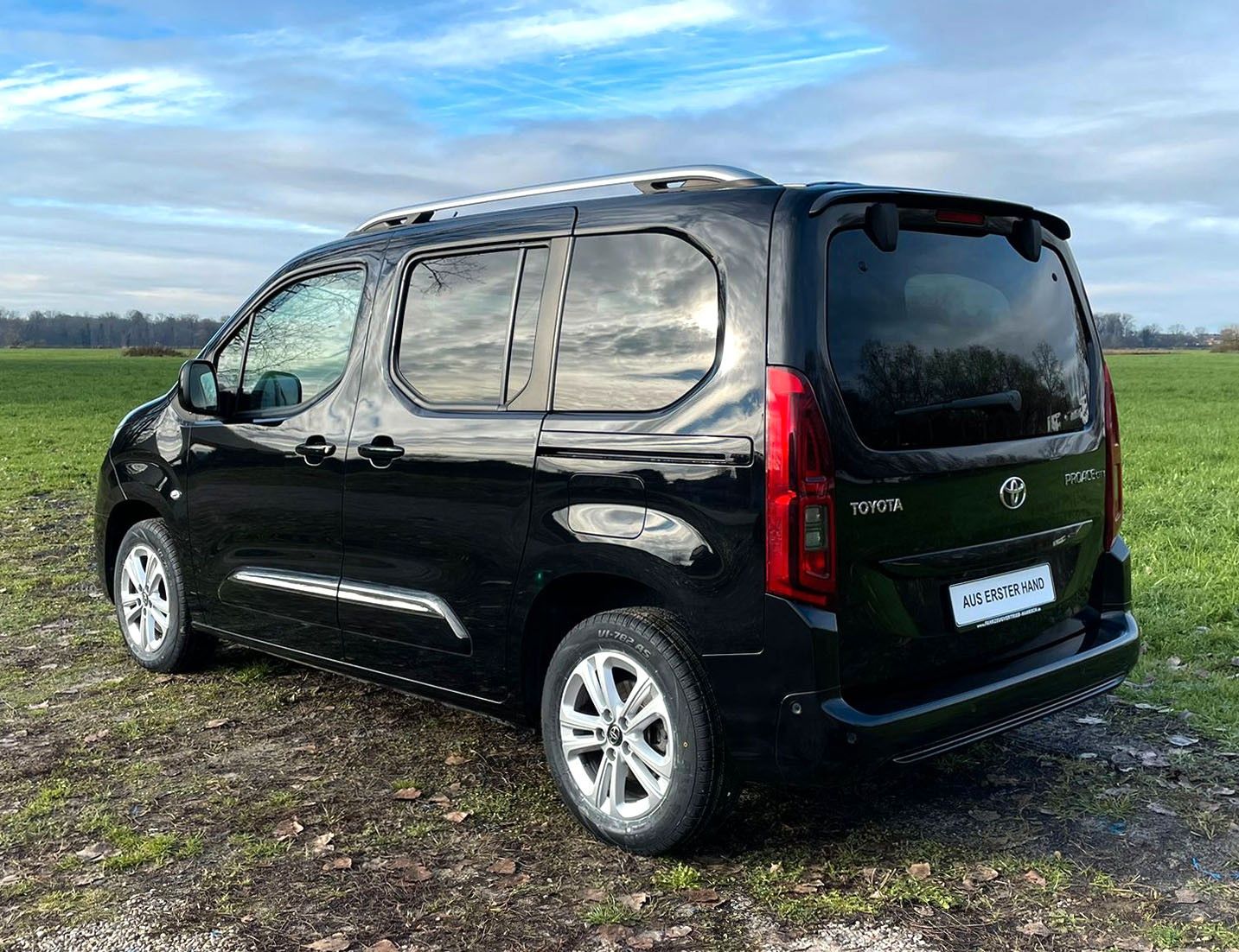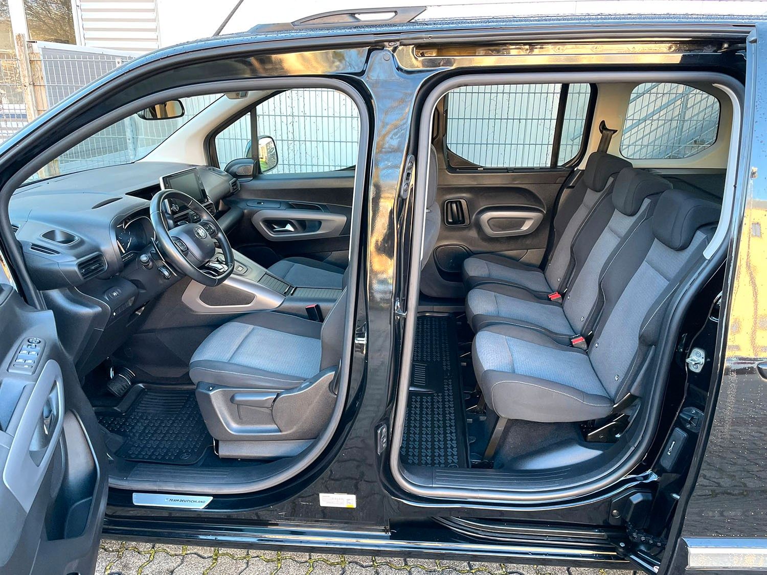 2.Sitzreihe mit Einzelsitzen, Ablagetasche an Vordersitzlehnen, Airbag Fahrer-/Beifahrerseite, Anhänger-Stabilisierungs-Programm (TSC), Audiobedienung am Lenkrad, Audiosystem: Multimedia Toyota Pro Touch, Außenspiegel elektr. anklappbar, Außenspiegel elektr. verstell- und heizbar, Beifahrereinzelsitz, Beifahrersitz klappbar (Flat-Floor), Bremsassistent, DAB-Tuner (Radioempfang digital), Dachreling, Einparkhilfe vorn und hinten, Elektr. Bremskraftverteilung, Fahrassistenz-System: Berganfahrkontrolle (HAC), Fahrassistenz-System: Fernlichtassistent (Abblendautomatik Fahrlicht, AHB), Fensterheber hinten elektr. mit Einklemmschutz, Fensterheber vorn elektr. mit Einklemmschutz, Freisprechanlage mit Audiostummschaltung, Gepäckraum-Abtrennung (Netz), Gepäckraumabdeckung / Rollo, Heckklappe mit separat zu öffnendem Fenster, Heckklappe mit Verglasung, Innenspiegel mit Abblendautomatik, Isofix-Kindersitz-System, Karosserie/Aufbau: Kombi, Kindersicherung elektr. betätigt, Klapptische in Fahrer- und Beifahrersitzlehne integriert, Klimaautomatik 2-Zonen, Komfortsitze, Kopf-Airbag-System, Motor 1,2 Ltr. - 96 kW 12V Turbo KAT, Multi-Funktions-Display (TFT), Otto-Partikelfilter (OPF), Parkbremse elektrisch (EPB), Radstand 2785 mm, Reifendruck-Kontrollsystem, Rückfahrkamera, Schadstoffarm nach Abgasnorm Euro 6d-TEMP, Schiebetür links mit Verglasung, Schiebetür rechts mit Verglasung, Seitenairbag hinten, Seitenairbag vorn, Seitenschutzleisten Wagenfarbe, Sitz vorn links höhenverstellbar, Sitzausstattung: 5-Sitzer, Sonnenschutzrollo an Seitenscheiben hinten, Stau-/Ablagefach über Fahrer- und Beifahrersitz (Dachhimmel), Stop&Go-System (TSGS), Toyota Safety Sense, Universal-Schnittstelle (USB-/ iPod-/ AUX-Anschluss), Verglasung 2./3.Reihe, Verglasung getönt, Verglasung hinten abgedunkelt, Warnanlage für Sicherheitsgurte hinten, Warnanlage für Sicherheitsgurte vorn