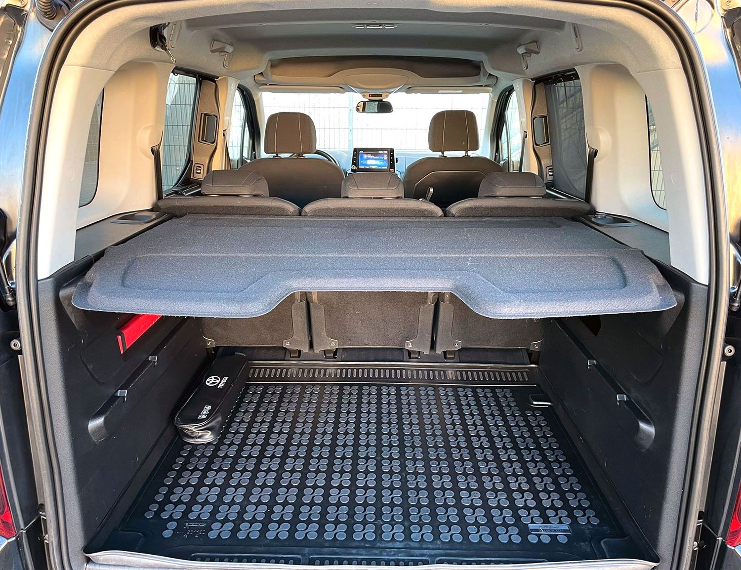 2.Sitzreihe mit Einzelsitzen, Ablagetasche an Vordersitzlehnen, Airbag Fahrer-/Beifahrerseite, Anhänger-Stabilisierungs-Programm (TSC), Audiobedienung am Lenkrad, Audiosystem: Multimedia Toyota Pro Touch, Außenspiegel elektr. anklappbar, Außenspiegel elektr. verstell- und heizbar, Beifahrereinzelsitz, Beifahrersitz klappbar (Flat-Floor), Bremsassistent, DAB-Tuner (Radioempfang digital), Dachreling, Einparkhilfe vorn und hinten, Elektr. Bremskraftverteilung, Fahrassistenz-System: Berganfahrkontrolle (HAC), Fahrassistenz-System: Fernlichtassistent (Abblendautomatik Fahrlicht, AHB), Fensterheber hinten elektr. mit Einklemmschutz, Fensterheber vorn elektr. mit Einklemmschutz, Freisprechanlage mit Audiostummschaltung, Gepäckraum-Abtrennung (Netz), Gepäckraumabdeckung / Rollo, Heckklappe mit separat zu öffnendem Fenster, Heckklappe mit Verglasung, Innenspiegel mit Abblendautomatik, Isofix-Kindersitz-System, Karosserie/Aufbau: Kombi, Kindersicherung elektr. betätigt, Klapptische in Fahrer- und Beifahrersitzlehne integriert, Klimaautomatik 2-Zonen, Komfortsitze, Kopf-Airbag-System, Motor 1,2 Ltr. - 96 kW 12V Turbo KAT, Multi-Funktions-Display (TFT), Otto-Partikelfilter (OPF), Parkbremse elektrisch (EPB), Radstand 2785 mm, Reifendruck-Kontrollsystem, Rückfahrkamera, Schadstoffarm nach Abgasnorm Euro 6d-TEMP, Schiebetür links mit Verglasung, Schiebetür rechts mit Verglasung, Seitenairbag hinten, Seitenairbag vorn, Seitenschutzleisten Wagenfarbe, Sitz vorn links höhenverstellbar, Sitzausstattung: 5-Sitzer, Sonnenschutzrollo an Seitenscheiben hinten, Stau-/Ablagefach über Fahrer- und Beifahrersitz (Dachhimmel), Stop&Go-System (TSGS), Toyota Safety Sense, Universal-Schnittstelle (USB-/ iPod-/ AUX-Anschluss), Verglasung 2./3.Reihe, Verglasung getönt, Verglasung hinten abgedunkelt, Warnanlage für Sicherheitsgurte hinten, Warnanlage für Sicherheitsgurte vorn